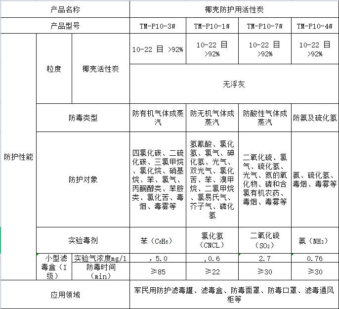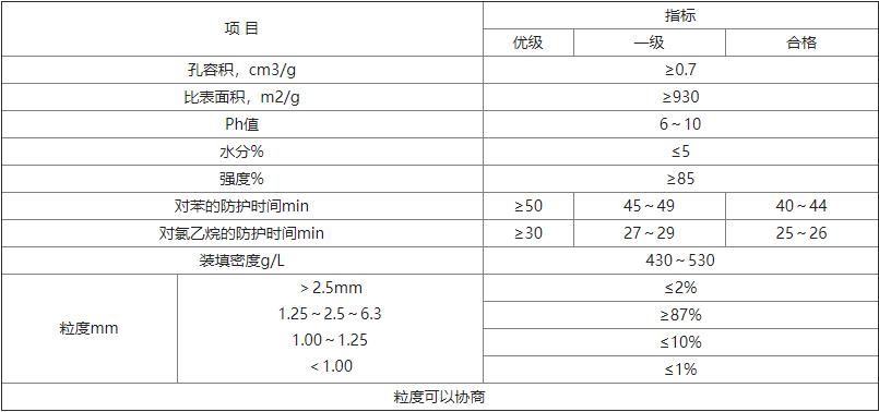 煤質柱狀防護活性炭技術指標應符合下表要求