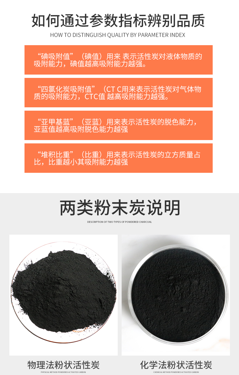 粉狀活性炭以優質木炭為原料,經特殊生產工藝精制而成,有物理法、化學法兩種。經水蒸氣活化后,精制處理,粉碎而成。本品外觀為黑色粉末狀,在一般溶液下均不溶解。無臭無味,具有表面積大吸附為強、純度高、濾速快、質量穩定,具有絮凝效應和助濾效應等特點。廣泛適用于食品、醫藥、味精化工等產品的脫色、除雜精制。也可以用于水的凈化處理。