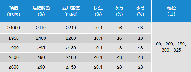 生產工藝:本系列產品選用優質無煙煤為原料,采用高溫蒸汽活化工藝生產,然后經科學配方精制而成的粉末活性炭。煤質粉末活性炭可以根據用戶要求制成不同吸附性能、不同脫色能力、不同細度的等級活性炭。粉狀活性炭吸附速度極快,具有絮凝效應和助濾效應。使用單位的建設投資少,運轉費用低,因而在自來水廠、污水處理廠倍受青睞。在食品、醫藥、脫色、結晶、過濾、物質提純等領域具有廣泛用途。也是活性炭濾氈,活性炭泡沫塑料的主要材料。