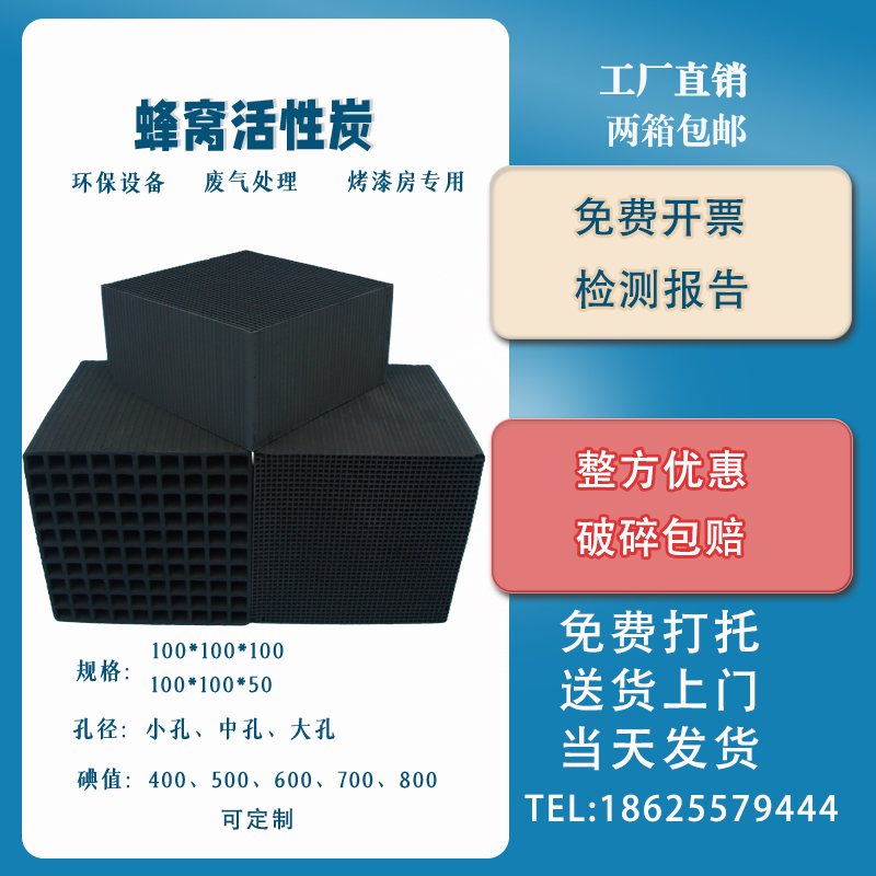 5.蜂窩活性炭形狀規格不定,因此沒有一個具體數值,一般的蜂窩活性炭密度在0.45-0.65g/cm3之間,換算成一立方就是450-650公斤。