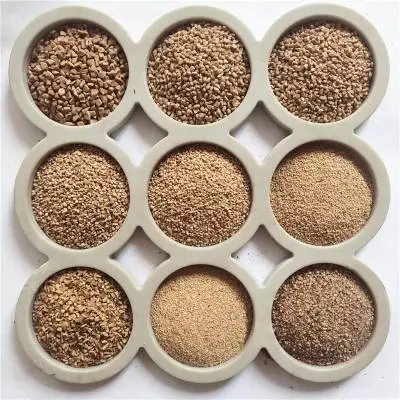 果殼濾料規格:0.5-0.8mm(24-35目) 0.8-1.2mm(16-24目) 1.2-1.6mm(12-16目) 1.6-2mm(10-12目) 產品介紹:果殼濾料采用優質山核桃殼為原料,經過破碎、拋光、蒸洗、藥物防腐處理,兩次篩選加工而成。
