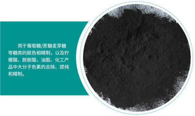 食品中使用活性炭的主要目的是除去色素及其前驅物質,調整香味、脫臭、除去膠體、除去妨礙結晶的物質及提高產品的穩定性。廣泛應用于液相吸附,如制糖業、飲料業、化工業、醫藥業、油品業、印染業、環保業等領域方面。特別適用于食品工業甜味劑,如甘蔗糖、菜糖、粉糖、糖蜜、木糖、木糖醇、麥芽糖、葡萄糖和水解蛋白液的脫色、除膠質。飲料業如可口可樂、百事可樂、食品添加劑、保鮮劑、糖精、味精檸檬酸、果膠、明膠、 香精香料、活性白土等。化工醫藥中間體,胱氨酸、酸化甘油、衣康酸、熒光增白劑、沒食子酸、對苯二酚等制品的脫色、去異味,尤其對大分子色素吸附、去色更有特效。蔗糖、甜菜糖、淀粉糖精制業是活性炭主要的傳統市場。