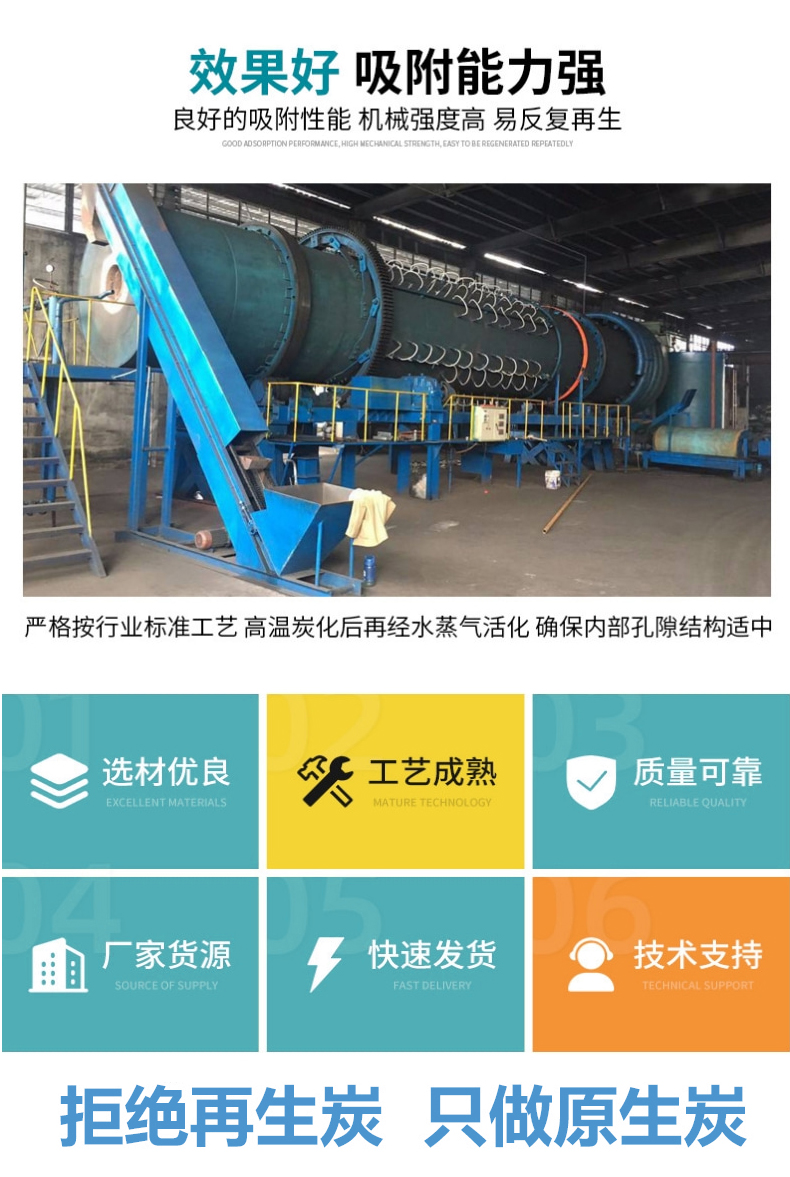 5.椰殼活性炭的形狀一般是破碎的顆粒狀和片狀,而成型活性炭,如柱狀和球形活性炭,大多是煤基碳。